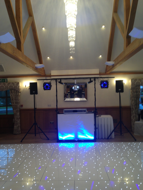 Jason uses a slightly smaller set-up as he plays pretty much just off CD at weddings so doesn’t need quite as much space, and his white fronted set-up looked great at Mulberry House alongside the LED dancefloor that Jon & Holly had hired in.